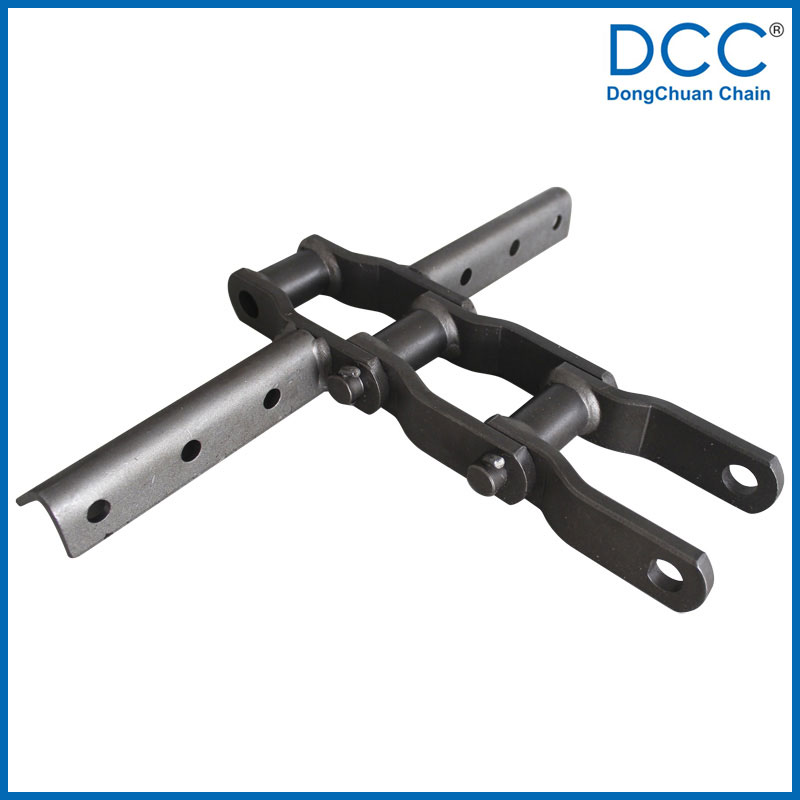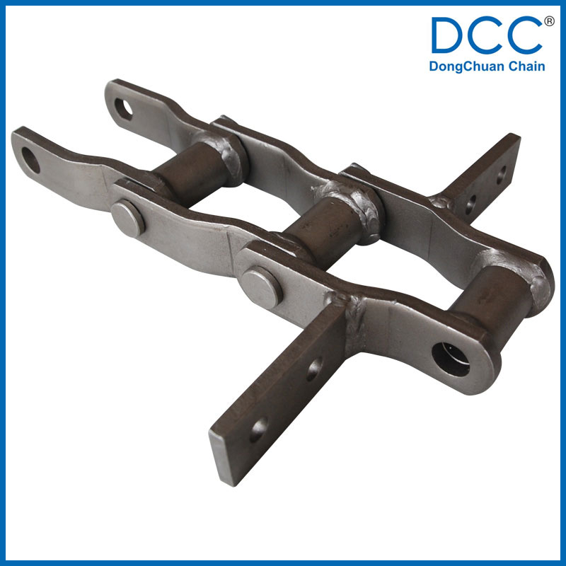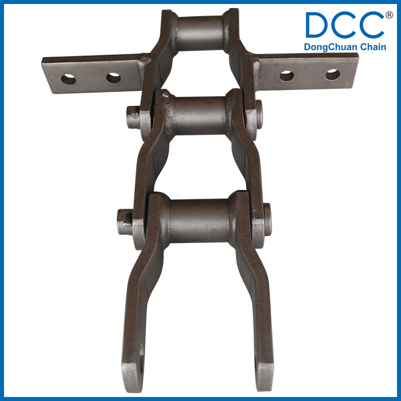 焊接彎板鏈?zhǔn)菍?zhuān)門(mén)針對(duì)帶有強(qiáng)烈沖擊性、磨損性物料的輸送而設(shè)計(jì),可應(yīng)用在粉塵較大的環(huán)境,主要應(yīng)用于谷物刮板輸送、豆粕刮板輸送、工業(yè)散料輸送、木材加工等,能經(jīng)受持久磨損和高強(qiáng)度沖擊。窄系列焊接彎板鏈小端內(nèi)寬和小端外寬相對(duì)于寬系列來(lái)說(shuō)都比較小,小端內(nèi)寬的大小為28MM-77.1MM,小端外寬為51mm-117.35MM,但抗拉強(qiáng)度最大能達(dá)到552KN。